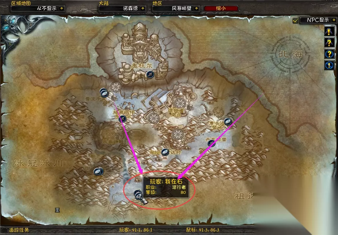 然后按照任务线走就可以了。风暴悬崖地图进行到一半,还有十几个任务要做。任务并不困难。到了80级,一个人就可以完成。