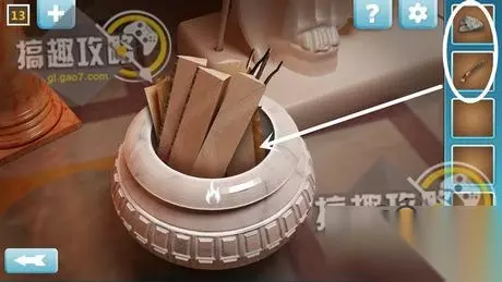 用针打开右边地上的箱子,再根据前面看到的高低顺序进行调整,打开后得到一根木棍。