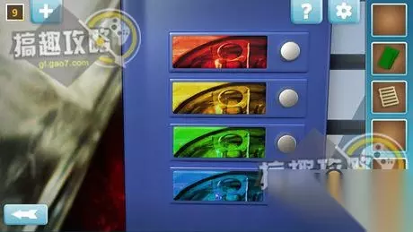 点击左上角处有六种颜色的墙壁,点击两次紫色,可以得到如上图所示高低顺序提示。
