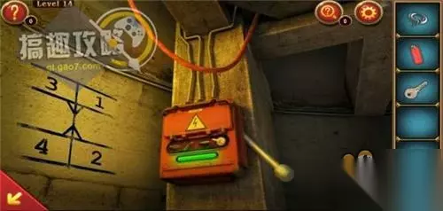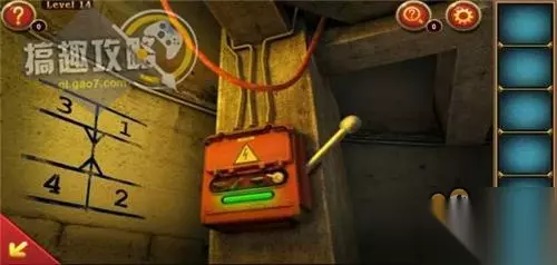 然后按照下图的数字顺序点击按钮,即可开门过关! 逃离神秘国度第14关攻略: