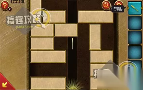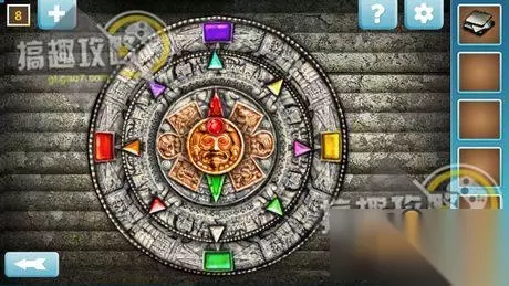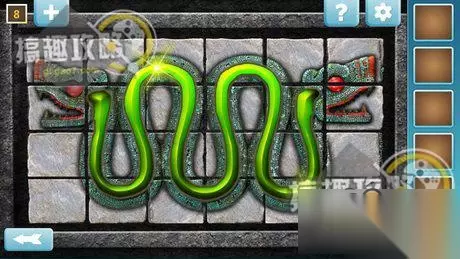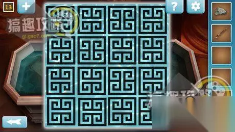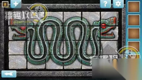 将石板归位于房间右侧的石盘上面,按照相同图案来点击,即可取得钥匙。