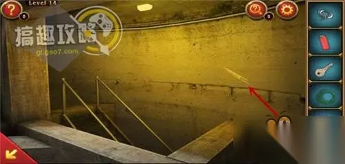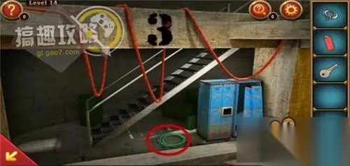 先将钉环安上,然后将电线和绳子组合,得到安全绳,最后再把安全绳栓在钉环上即可过关! 逃离神秘国度第15关攻略: