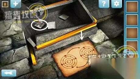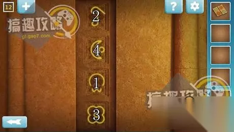 按照下图标示的数字来点按按钮,即可破解密码盘,完成后拿开木板,即可过关。 逃离神秘国度第8关攻略: