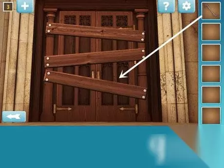 7、取得铁锹,撬开门上的木板,即可过关。 逃离神秘国度第4关攻略: