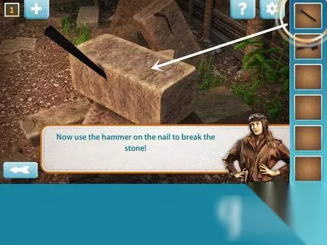 将钉子插在石头上,用锤子锤,取得破碎红宝石。