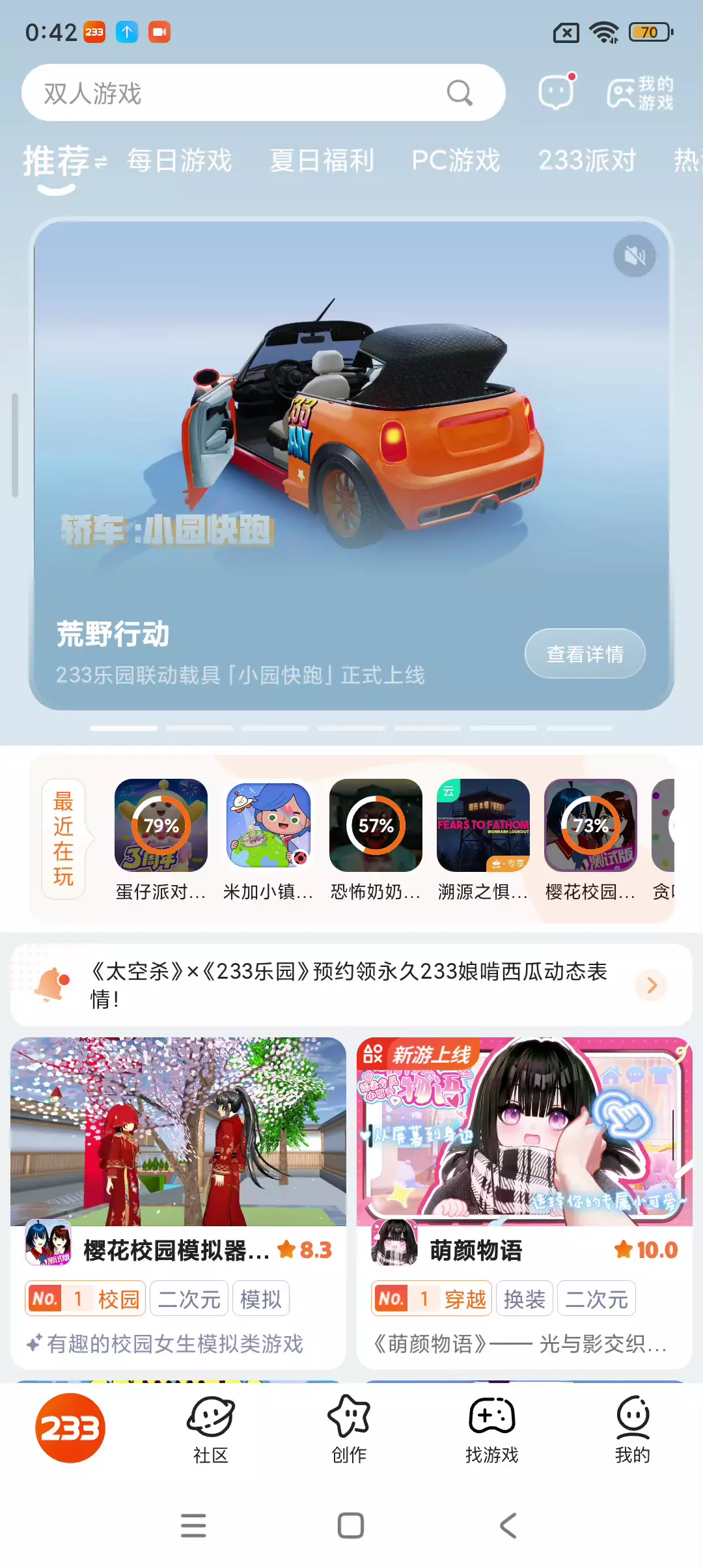 这个233乐园也应该改一下这个bug,这才几天没玩就变成这样了。点进去那个的按钮没了。行不行?用点心好吧。现在很多人在玩,你不用心了是吧?一进去就是卡卡卡除了卡还是卡,而且你还进不去,你更新好了你还要重新更新这个蛋仔派对怎么回事的?真的很佩服的,这个bug是不是太那个了?改善一下吧,那个蛋仔派对就是你更新了,他就是一直在搞你,你根本进去不。真的很佩服你,怎么做的这个游戏啊?现在的bug实在太多了,明明下好的游戏呢,他还要你重新更新,而且那个点击的按钮都没有,真的被搞破防了。