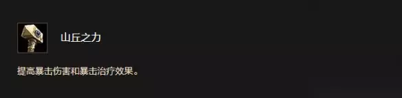 山丘之力 提高暴击伤害和暴击治疗效果。
