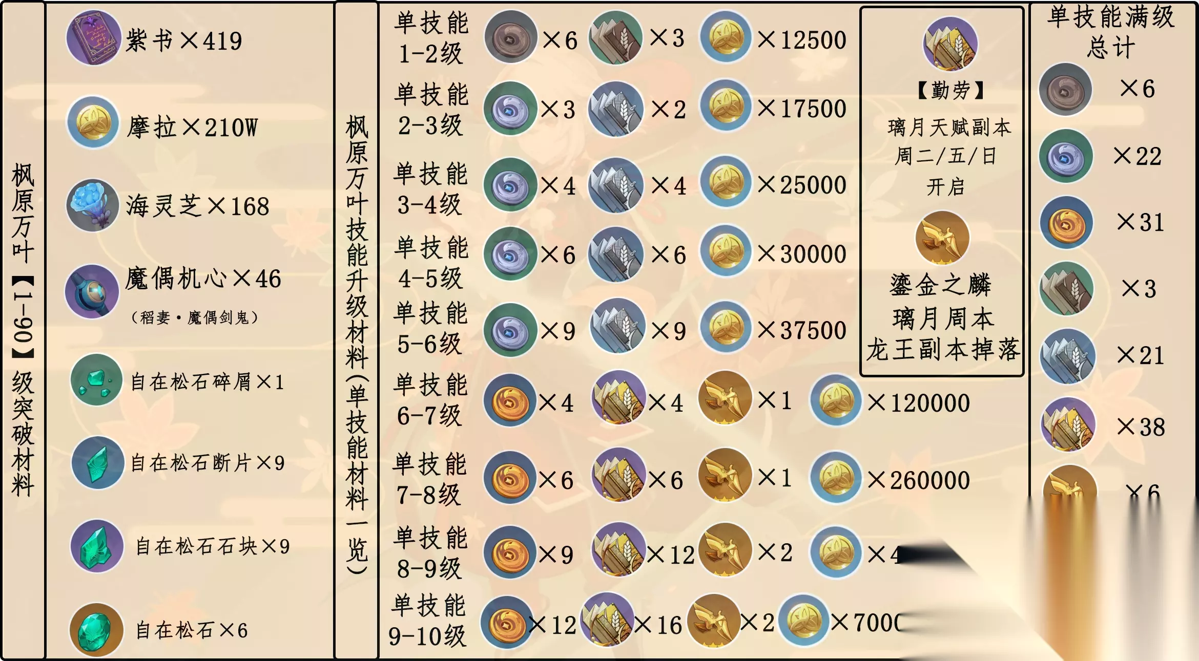 原神万叶培养材料怎么收集,很多小伙伴们都不知道万叶培养材料怎么收集,以及收集路线有哪些,接下来就带着小伙伴们一起来看看原神万叶培养材料收集一览。 原神万叶培养材料收集一览 培养材料一览图
