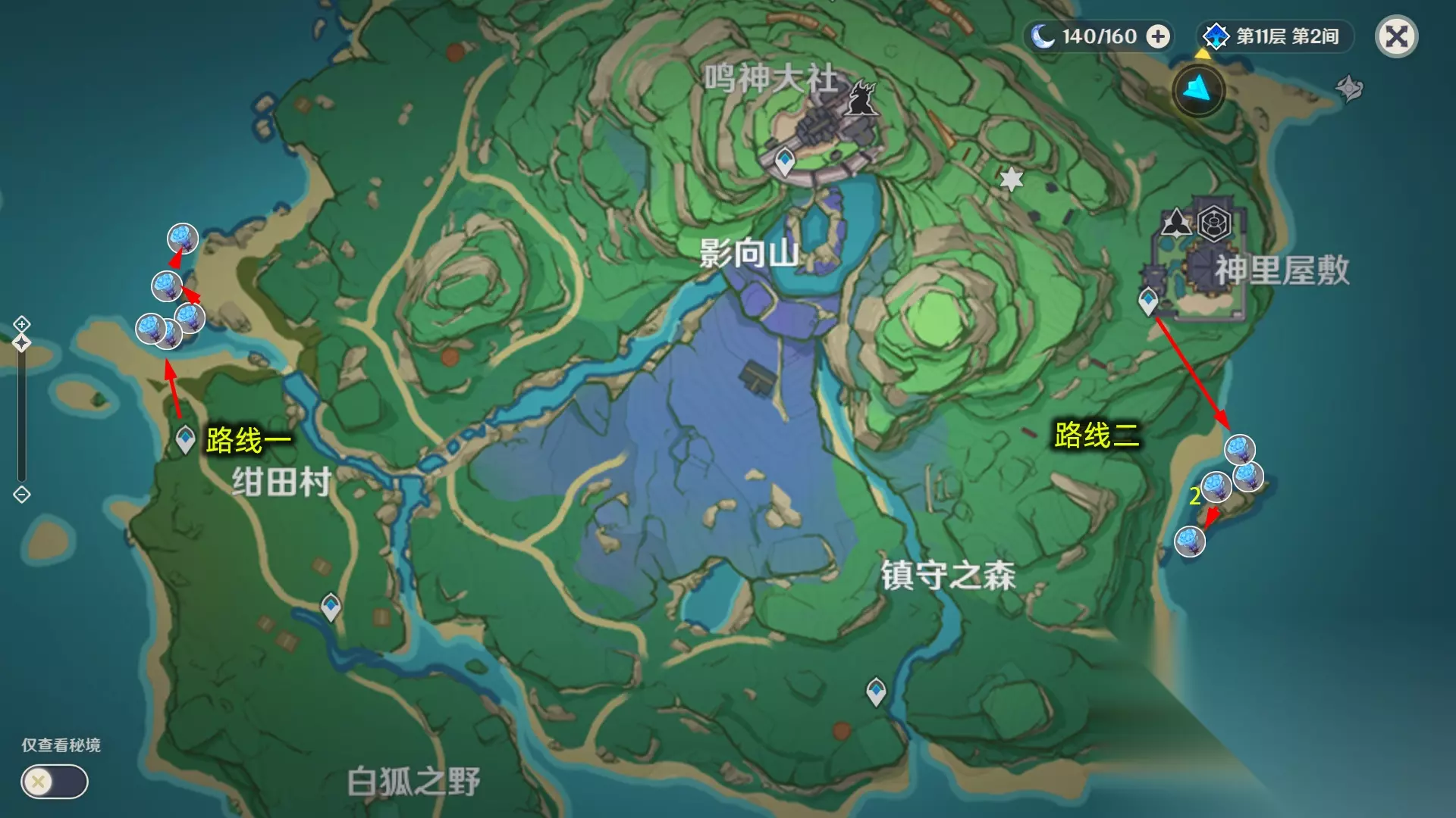 1.鸣神岛(路线二路程太远不建议采)