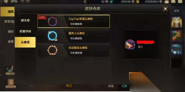4、第四步:在皮肤仓库中找到【头像框】,切换已获得的各种头像框,点击确认后使用。