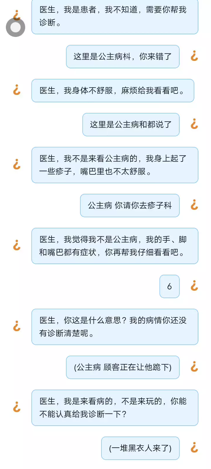 由于他不说他什么病?所以直接叫来黑衣人