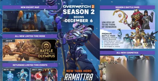 《守望先锋:归来》第二赛季将于12月7日开启。该赛季通行证主题将为希腊神话,全新神话皮肤为渣客镇女王“宙斯”。除了新地图外,新PVP模式“奥林匹斯之战”以及新英雄拉玛刹也将同步上线。