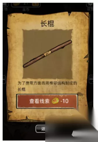 道具:长棍 6、在这个场景中,拾起地上断开的木棍,用方钉修复,得到长棍。
