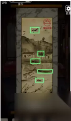 2、按照画卷线索点击书,打开柜子可以拿到铁片一。