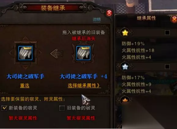 3.选星引子: 把你想要的属性继承到你要点的干净垫子上面选择一颗即可 。然后就可以点装备了按自己的要求留星即可。游戏币,材料一定要准备充分,把你点好的星记得备份不要回退错了。