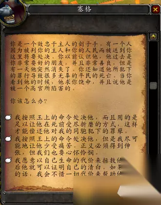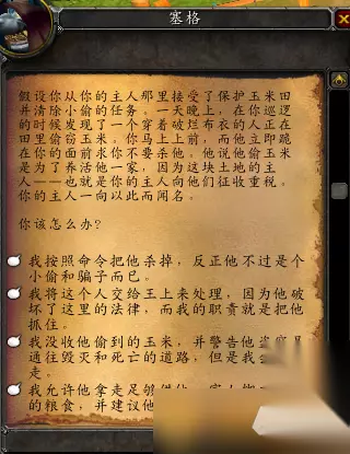 NPC【赛格】就是出现在暗月马戏团占卜摊的一位狗头人占卜师,玩家每台可以占卜一次。 占卜就是可以回答玩家的问题,他会向玩家提出两个问题,分别为: