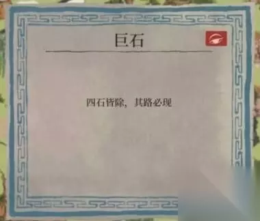 这块巨石位于鸟鸣局正前方,到达这里要先看砍掉外面的竹子。 四石皆除,其路必现 这里提示玩家清理掉地图中的四块石头。