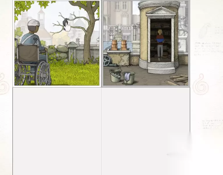 在新的场景中,放大远方会发现一个还是施工的楼,此时需要将这个场景移到另一个的下方,然后将那里带有石头的的天平一端放大,此时会看到这两个场景会重合,而上面的场景中会掉落石块,这里大家要及时将上面的那个场景缩小一下,并将这两个互换位置,再将下面带有锁的箱子那里进行放大,会发现和上面的又重合了。由此可见,此游戏中是需要各位通过将不同的场景结合起来,这样才能找到对应的解决方案的。以上分享了画中世界攻略,介绍了一些此游里主要的线索。
