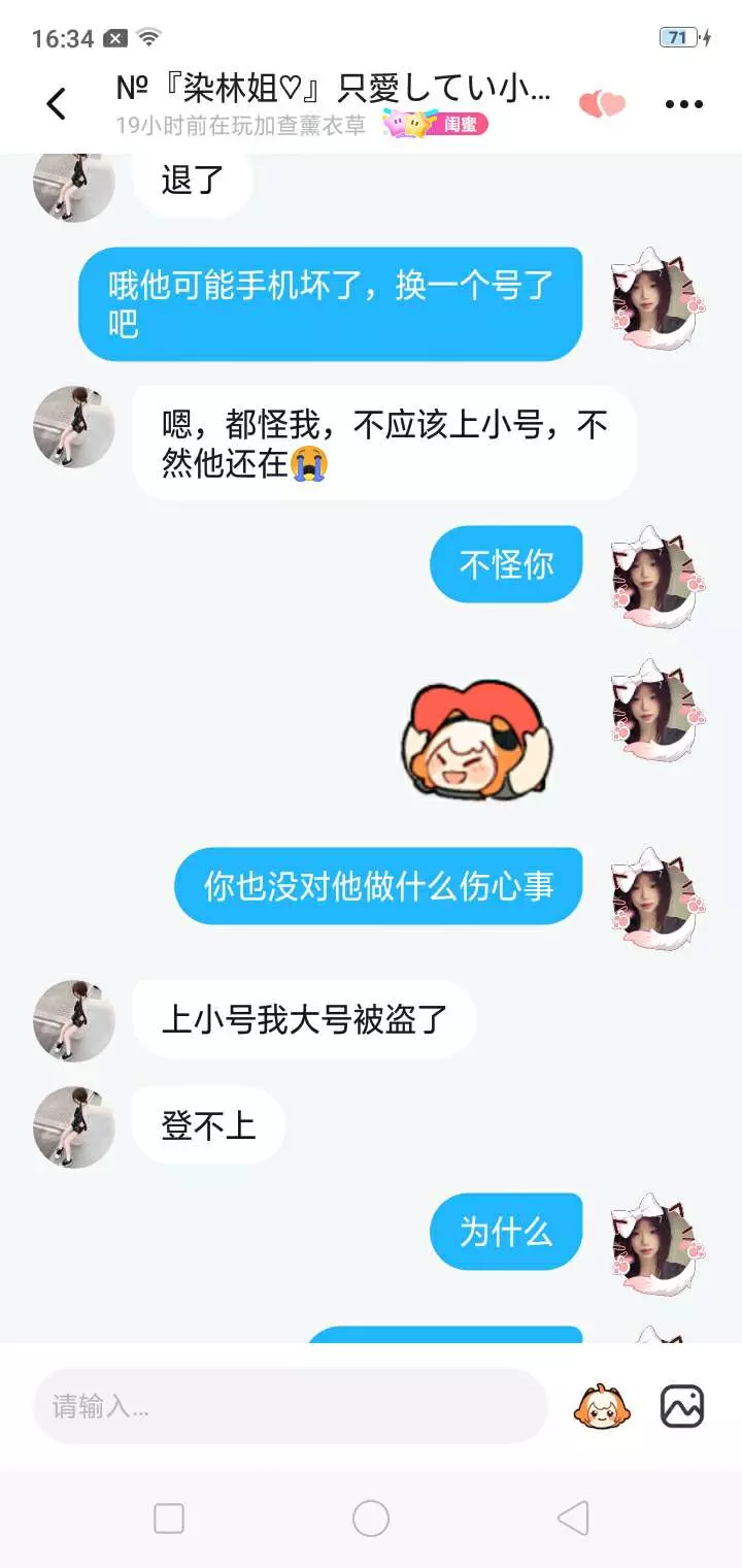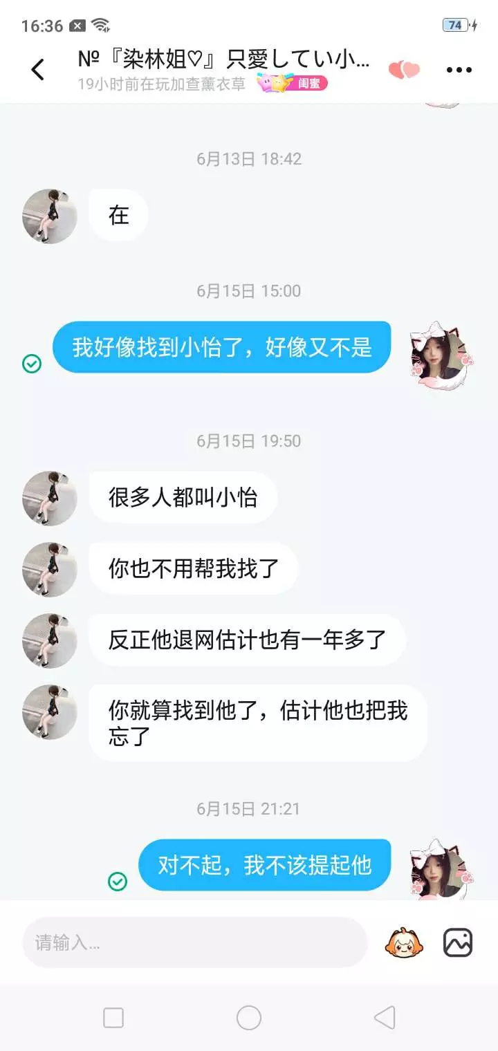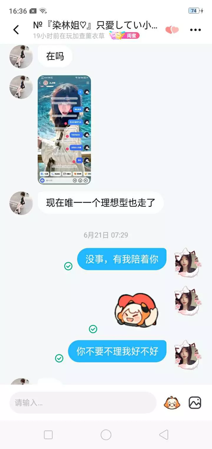 她陪了我很久我也陪了他很久我感觉我也快陪不了他了不过每天聊聊天也是挺好的希望能火谢谢☺