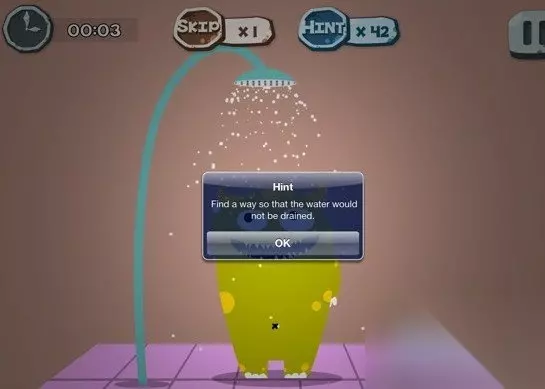 100种蠢蠢的死法第四关: 很简单,按住下水道口,让洗澡水淹没整个屏幕,你被淹死了。
