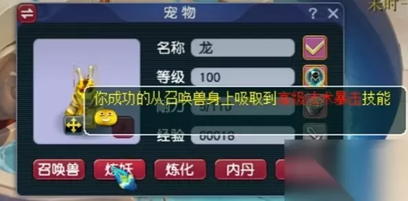 3、需要注意的是,被吸附的召唤兽会直接消失,不管本次吸附是否成功。 4、根据测试,吸附获得点化石的概率大概在10%左右,概率还是比较低的。