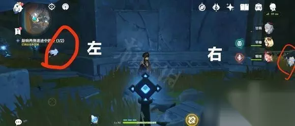 7.先跟随右边这只仙灵来到下图的位置,要注意:在找到右边这只仙灵之前不能靠近左边那只。
