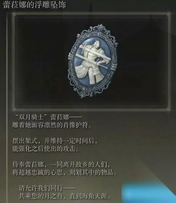 获取详情>>>艾尔登法环DLC护符千枯花束获取流程 四、蕾菈娜的浮雕坠饰 艾尔登法环护符蕾菈娜的浮雕坠饰在恩希斯城赐福上方的教堂获得,从赐福恩希斯城出发沿着路走到上方教堂