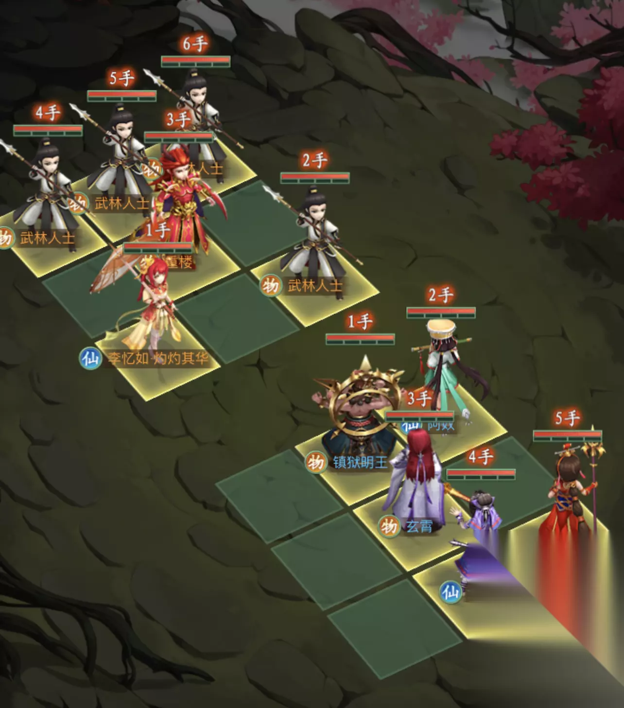 1.阵容排布 ①镇狱明王 ②阿奴 ③玄霄 ④紫萱 ⑤温慧