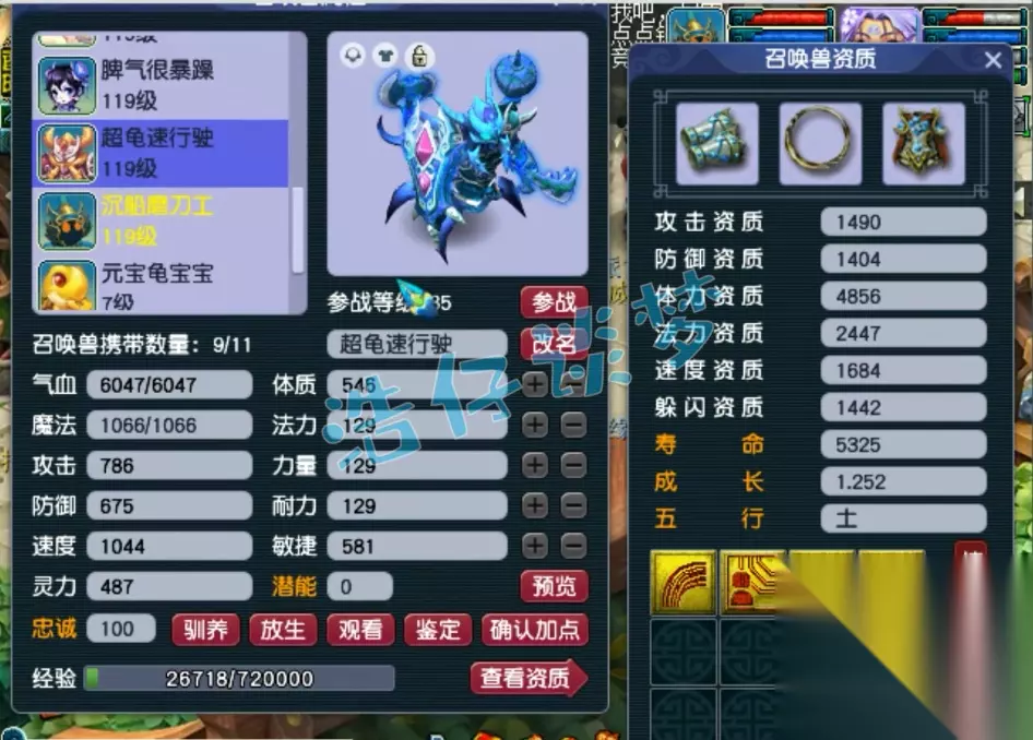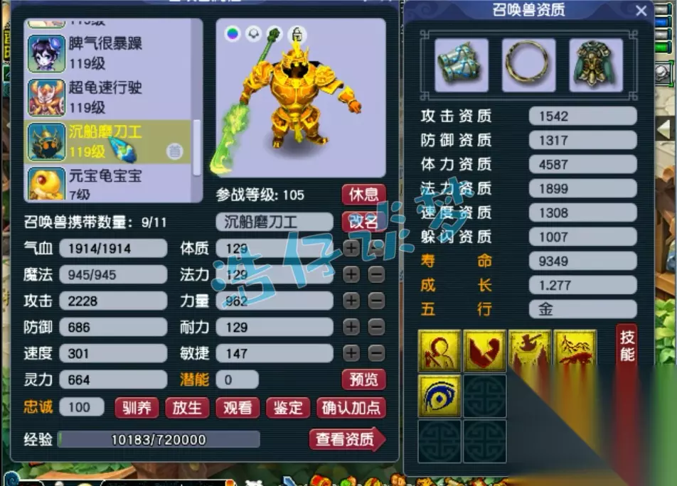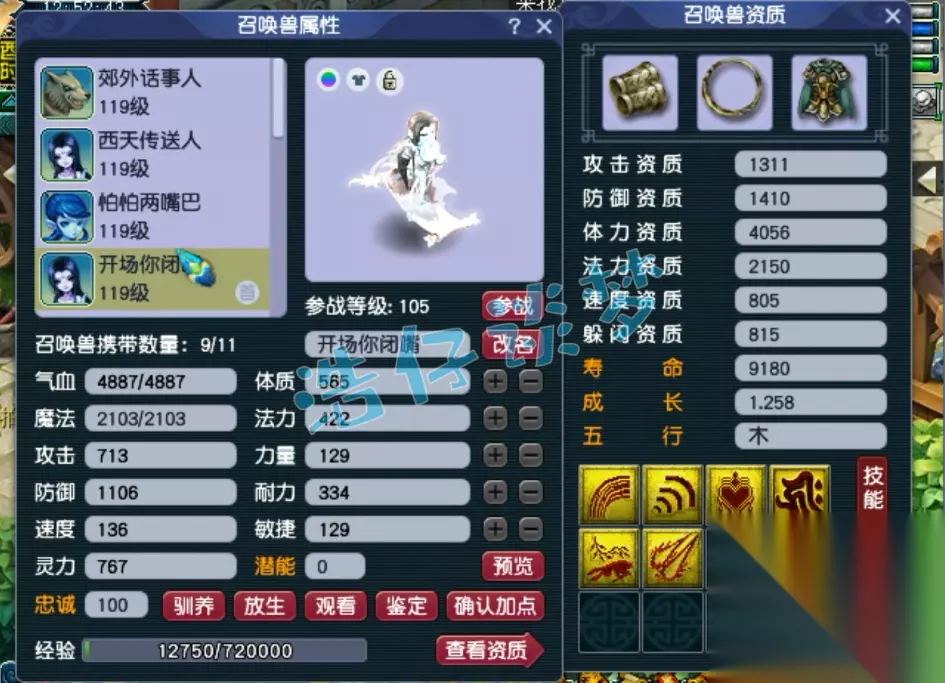 100级野兽之力红萼仙子套女头,打了10锻月亮石,109的物理系很多带的都是无级别,所以舍弃了野兽之力特技,辅助带野兽之力能弥补不足!