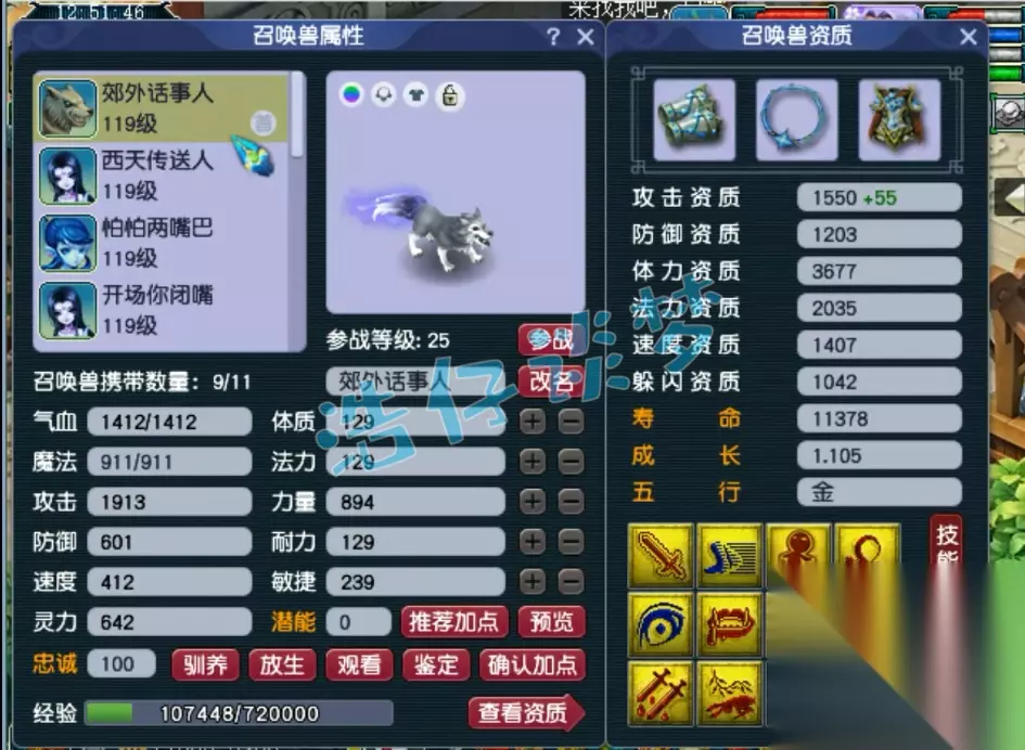 10技能高连个性宠狼,资质非常不错,不过成长稍微有点差!