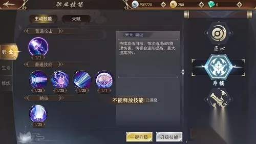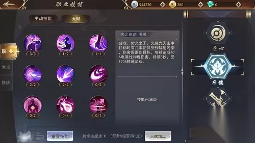 玩家初期优先学习第二层光蚀、追踪;第三层紫光索命、爆裂之光、元素掌握;第四层和光同尘、回光返照,增强属性攻击力、暴击伤害、生存能力。在玩家到达高等级以后,小编推荐学习第五层元素平衡;第六层三光流转;第七层焚光之烬;第八层神光审判,提高召元素伤害,减少冷却时间,强化角色输出能力。