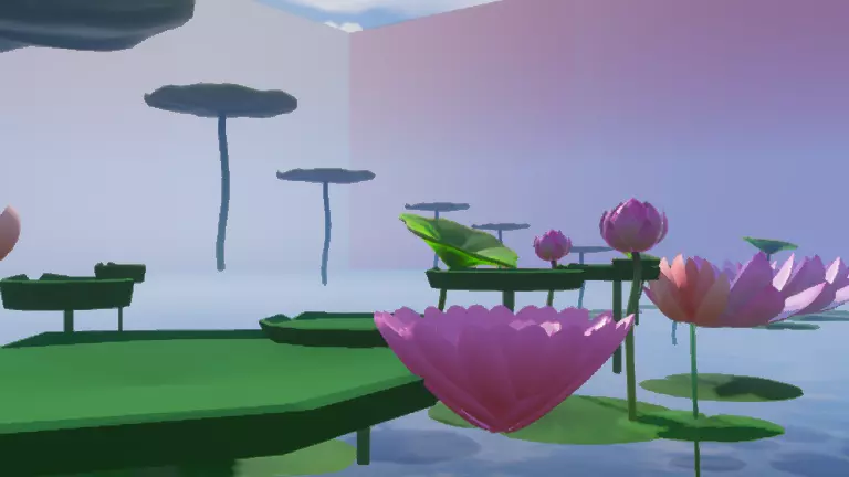 我们站着荷叶上依然能感受到这层薄雾,它使整个画面更加漂亮梦幻,我们可以一边跑酷一边欣赏这荷花荷叶,
