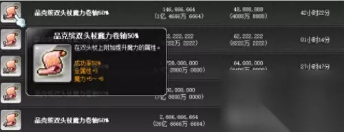 如果使用特米武器,卷轴打造可以考虑更好的V卷、red卷、或者惊人。 副手如果不追求极致可以考虑命运宝珠(但是不加任何属性),因此天然只有500-1000万就可以买到(买完砸个A潜洗6%-9%攻击力百分比就可以先用着了,因为是无限交易的,因此后续需要更换也可以继续拿到拍卖交易):