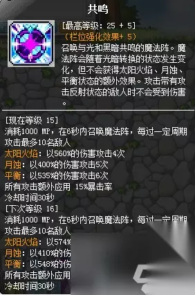 2、技能介绍: 夜光法师的技能状态一般有光明、黑暗、平衡。 夜光法师面板状态随着释放光明技能,黑暗状态栏会慢慢叠加,光明状态栏不断减少(光明状态下释放光明技能会有伤害加成,段数翻倍,但是额外增加的段数是原技能50%的最终伤害每段):
