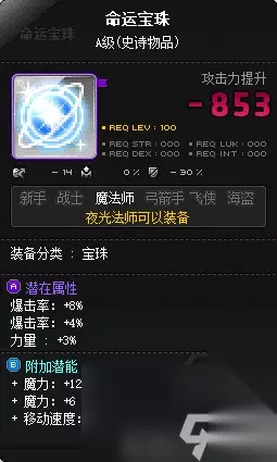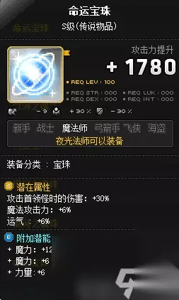 追求极致的小伙伴也可以考虑银河系副手(会比命运宝珠多14点智力、14点运气):