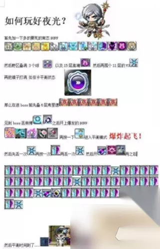 次元神隐、末日审判的无敌用来躲避其他秒杀技能更为合适,例如路西德的绿龙,喷火灼烧是持续性的秒杀伤害,持续时间比较长,一个无敌顶不住,需要把几个无敌算准时间接上。 由于夜光拥有2个束缚技能,一般BOSS束缚有120秒的冷却时间(即释放第一个束缚击以后不能马上丢第二个,会被闪避掉)。但是针对BOSS转场,2个束缚还是非常有效的,例如斯乌1血转2血、黛米安1形态转换2形态等。1血打完转换2血马上再接一个束缚打一套爆发还是蛮不错的。 夜光法师打BOSS操作比较简单,主要输出手法是绝对死亡配合V3打爆发(剩下的就是怎么去堆增益让平衡更持久的问题了,要肝还要氪),具体操作可见下方如何玩好夜光。 最后,上一张如何玩好夜光法师(版权-贴吧用户:还是Four):