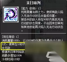 这种加点则考虑到升级与打BOSS兼顾(更适合普通玩家)。具体分析:启示录-重生是为了加快暗状态进入平衡的,这个必须点。闪电反击-削减加点打到后面的大怪伤害大约只有50%,如果不是具有一定面板,还是推荐这么加点,闪电反击的攻击距离对于练级还是打BOSS提升都比较大。因此总结出这套加点。 这里额外提一提,末日审判属于夜光法师的束缚技能,并且施法的过程中是无敌的: