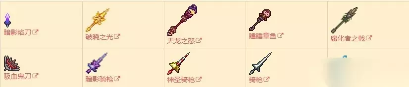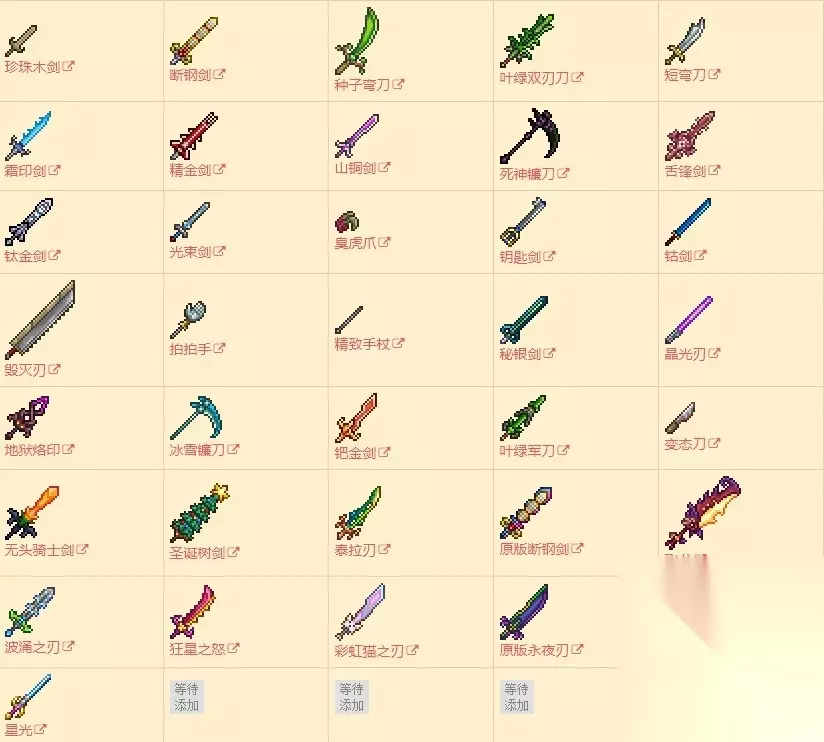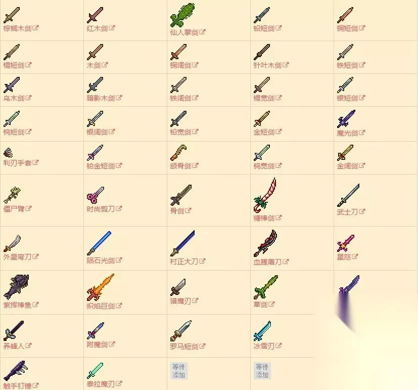 泰拉瑞亚武器有哪些?在泰拉瑞亚游戏中,还是有很多的武器装备的,如果各位玩家想知道这款游戏的武器都有哪些可以来看看小编带来的泰拉瑞亚武器大全图鉴,相信会对大家有所帮助的。各位小伙伴跟着小编一起来看看吧。 泰拉瑞亚武器大全图鉴 剑类武器