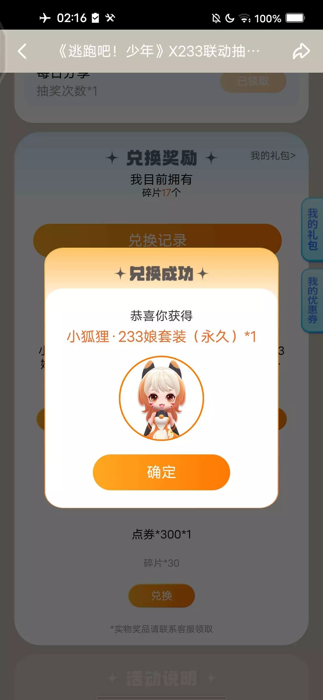 连续做了23天任务,终于有小狐狸 233娘套装了