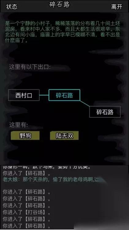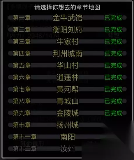 在这一章节玩家会进入到华山村,主线任务的具体情况要求是:玩家需要和村中大娘交谈,获取到家里的鸡被一些流氓偷了,然后玩家需要到巷子里对流氓教训一顿,从他们身上获取到钱袋送给大娘;接着到村西边的去找到王小二,对其教训;之后来到店前厅对前来阻拦的壮汉进行反抗打击,再进入到内室中找王铁手进行教训,这样主线任务就能完成。各种支线就十分的轻松,玩家就是前往不同的区域来寻找一些比较明显的道具等,在密室尽头可以看到一本残破的书——纯阳功残页,对属性提升有一点帮助,里面还可以与薛归切磋,胜利后获得书信和随机道具;铁匠铺可以与铁匠切磋,胜利后获得铁匠,这里可以李麻子交易买一些酒类道具;碎石路有小贩,可以买一些恢复类物品。