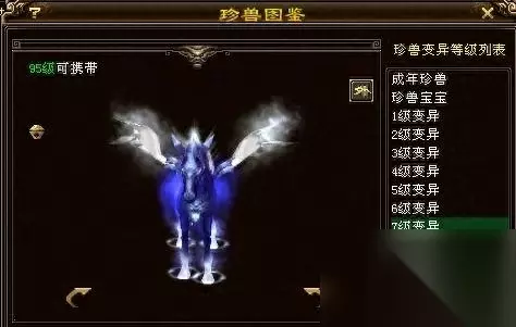 八级变异的太苍龙子宝宝图样。 太苍龙子宝宝六级变异的粉色天马,七级变异的黑色天马,八级变异的白色天马都是非常好看的,带出来的效果很拉风。刚出的时候这三种变异的太苍龙子真的是超级贵。