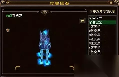 太苍龙子宝宝是网游天龙八部中的一款珍兽宝宝。也是多年前天龙八部马年推出的一款珍兽宝宝,获取方式是天龙八部游戏VIP达到九级可以领取一个太苍龙子珍兽笼子,笼子打开可以获得一公一母两只珍兽宝宝。 太苍龙子宝宝是外功攻击型力量资质的宝宝,属于超灵宝宝,珍兽以珍兽笼子的形式存在,获得太苍龙子珍兽笼子的玩家可以根据自己的需要选择5-95级可携带的太苍龙子宝宝。二代宝宝共有8种变异等级,如下图所示: