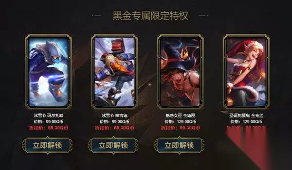 活动规则: 1、活动时间:2021-06-08至2021-06-21 23:59:59。 2、每位玩家在黑金商店只拥有1次获得专属折扣解锁指定道具的机会,同时获得1个可以在黑金专属限定商店折扣解锁指定限定皮肤的特权。 3、黑金专属限定特权折扣与普通折扣互相独立。 4、如果你拥有神秘钥匙,使用神秘钥匙可以刷新你的专属折扣!(不会刷新黑金限定皮肤折扣)。 5、每位召唤师在获得折扣后,同时解锁英雄及皮肤解锁特权,每一个英雄只能选择一款皮肤解锁。 6、请在登陆页面后绑定大区,解锁的皮肤将发放至绑定大区。