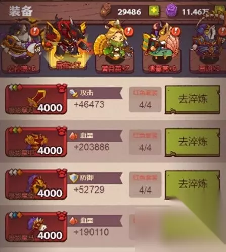 第二步:比较香的属性留下,一般的属性洗掉,直到洗出香的属性为止。比如吕布四个部位,武器部位:橙色词条减伤,铠甲部位:橙色词条暴击,头冠部位:橙色词条爆伤,坐骑部位:橙色词条生命。那么我可以把头冠部位的爆伤词条和坐骑部位生命词条先后洗掉,然后洗练出(减伤、暴击、技能伤害、免控)这些橙色词条,或者(减伤、暴击、免控、技能伤害、破甲、攻击、生命、爆伤)红色词条留。有四条有帮助的橙色红色词条后,就去攒白玉。为了开三孔和四孔做准备。不断优化词条,攒开孔资源的淬炼第二步。