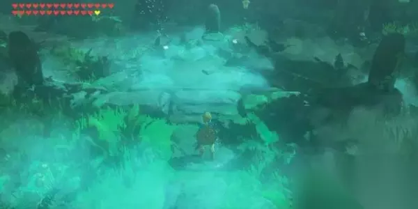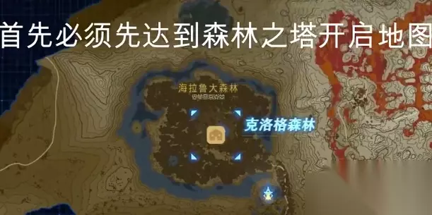 2.大师之剑在呀哈哈的森林之中,我们必须通过一片迷雾森林【Lost woods】,迷雾森林中万一走错路,你会被迷雾包围,然后送回出发点。穿过迷雾森林的诀窍是:看灯台的火焰飘向,也就是风向,顺着风向走即可。没有灯台的位置就用火把解决。通过之后就会来到呀哈哈的森林,大师剑就在地图的最中间。