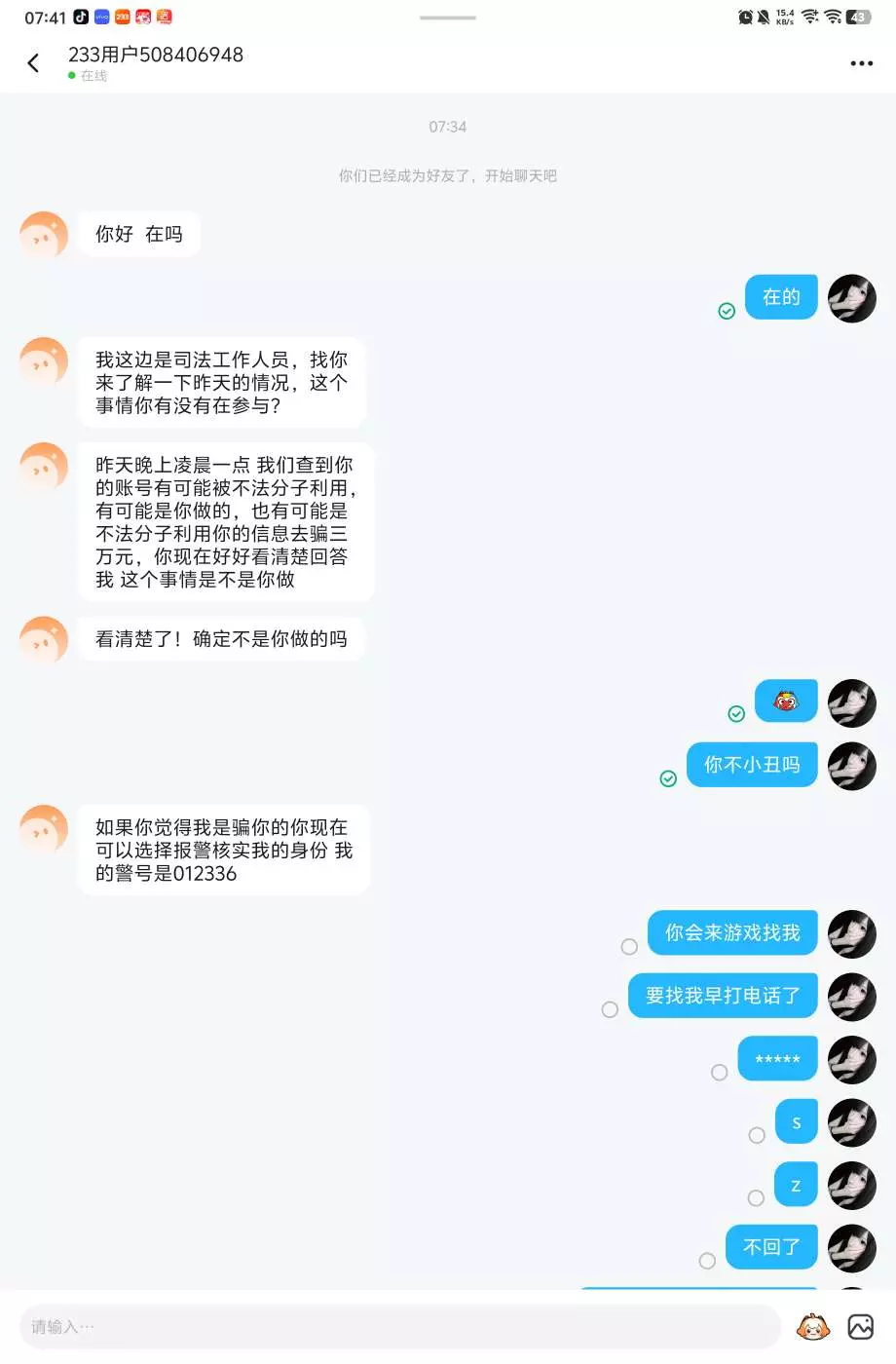 来了个诈骗的