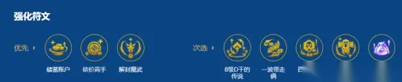 三、强化符文 2-1最优先拿经济类的符文,我们可以吃装备的前排和后排非常多,所以次优先拿装备类的符文。