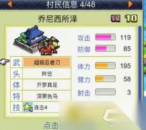 速览: 233乐园小编为大家整理了合战忍者村中几位最强人物的特点和定位,无论是前期高产出的犬冢,还是连击与DPS出众的乔尼,以及骑兵抗性提升的沙拉和带来战术加成的狮子丸,都在游戏中有着独特作用。本文将帮助玩家更好地理解各角色的优劣势。 1、犬冢 绝对主力忍者其特技太没脑子了。主要功能就是在前期要是有个小熊套装的话,自己就能连丢带撞制造出超高的产出,多种裸奔多种无敌了。还有就是他工作得很辛苦,职位不多的话,就能拿着工作装备凑够40份工作,任由蠢货低贱的工作人员打。