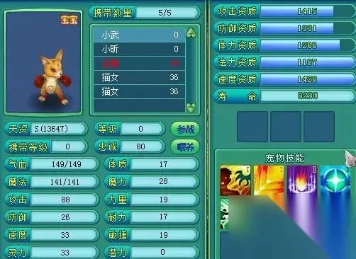 6、这个宠物可以在野外遇到捕捉,以及清洗低级宠物的时有概率获得。 7、携带拳击手套的小武可以增加偷袭、冲击以及高级精准能力,拳头跟腿的力量很强。