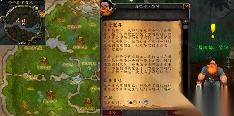 魔兽世界怀旧服WLK酒香犹存任务怎么做呢?其实这个任务是游戏中比较有趣的一个任务,如果大家实在不清楚怎么做相信大家看完本篇攻略就知道了,魔兽世界怀旧服WLK酒香犹存任务还是比较简单的一个任务,大家不要错过。 怀旧服WLK酒香犹存任务怎么做 接取等级:76 接取NPC:葛瑞姆·雷酒(索拉查盆地,奈辛瓦里营地) 完成NPC:葛瑞姆·雷酒(索拉查盆地,奈辛瓦里营地) 奖励声望:无 任务开始: